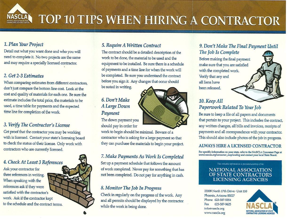 Consider these 10 tips to make sure your contractor measures up and avoid substantial financial and emotional loss:
